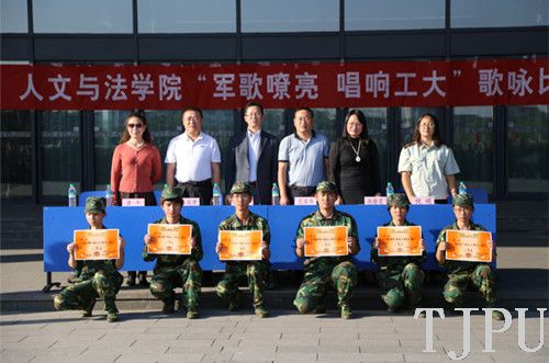 2013年9月27日,人文与法学院2013级“军歌嘹亮,唱响工大”歌咏比赛在我校励志广场成功举办。文法学院院长肖强、党委书记范国华,校武装部副部长刘栋,学院党委副书记尚绪芝、学院音乐教授唐平出席本次比赛。比赛由学办主任倪娟老师主持。