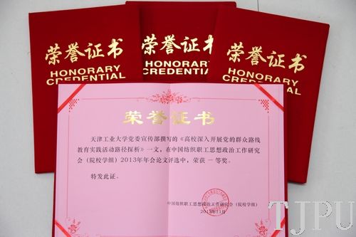 近日,由中国纺织工业协会、中国纺织职工思想政治工作研究会主办的中国纺织职工思想政治工作研究会(院校学组)2013年年会在浙江理工大学召开。在本届年会的论文评选中,我校报送的论文《高校深入开展党的群众路线教育实践活动路径探析》荣获一等奖,另有三篇论文荣获二等奖。
