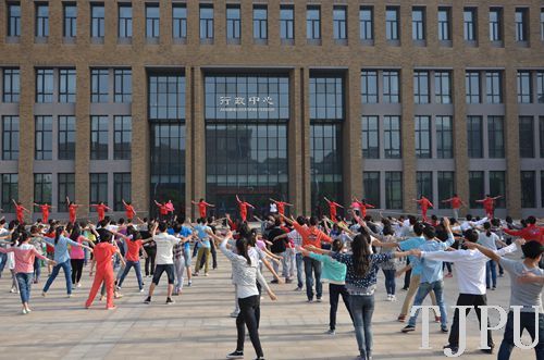5月19日,纺织学院13级同学以活力健美操的晨练形式展现了当代大学生的青春风采,使他们尽快走向操场,一起感受春天的阳光。健美操队伍整齐有序,音乐响起同学们动作一致,肢体优美、身体协调,宛如初升的太阳,朝气蓬勃。活力四射的健美操不仅锻炼了身体,丰富了同学们的生活,还可以消除疲劳感,促进身体良好姿态的形成。健美操结束后,大家以兴趣小组的形式开展了诸如跳绳、呼啦圈,踢毽子等丰富的体育活动。