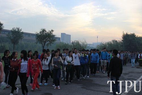 9月15日,材料科学与工程学院2014级本科新生在东苑小操场开展徒步“行善”活动。新生们个个精神饱满,294名新生无一人缺席,他们在学生班主任的带领下以班级为单位出发徒步走,中途绕工大镜湖一圈并转向图书馆。途中,新生们人人手拿手机并时刻关注着自己手机上所走步伐数值的变化。所走路程全长近1500米。活动开始之前,新生们了解该活动的意义之后,均在自己手机上下载了“行善”软件。