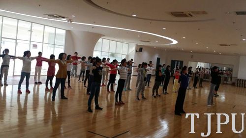 为提高学生身体素质,丰富学生课外活动,10月18日,体育部在体育馆副馆组织开展了全民健身操有氧舞蹈二级套路培训活动,来自我校15个学院的50余名学生加了本次培训。