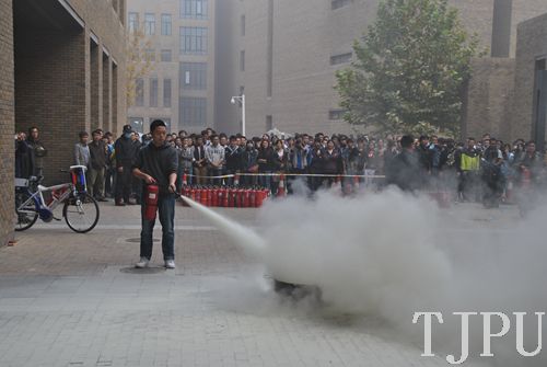 10月25日,材料学院和保卫处联合举办了一年一度材料学院研究生及本科生消防安全知识培训以及消防演习。
