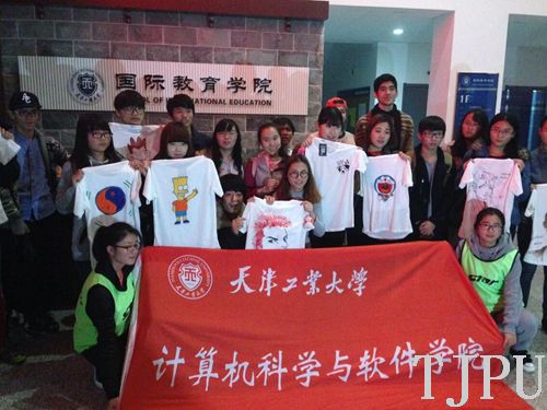 11月10日下午,我校中外学生手绘T恤友谊赛在国际教育学院1号活动室举行,我校计算机科学与软件学院和国际教育学院共计50余名中外学生参加了友谊赛。