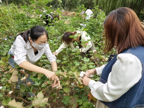 据悉,此次采摘的棉花将被运往学院实验室,经过清花、梳棉、并条、粗纱、细纱等工序,最终织成布匹将赠予南开区阳光小学,作为大中小思政一体化建设的珍贵礼物。