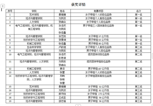 本次比赛我校共派出了21名学生参赛,赛场上不畏强手、敢打敢拼,每招每式都展现出扎实的技术功底和顽强的意志品质,将新时代大学生的青春活力与拼搏精神展现得淋漓尽致。经过多轮激烈角逐,我校最终斩获7金5银7铜的优异成绩。具体获奖情况如下: