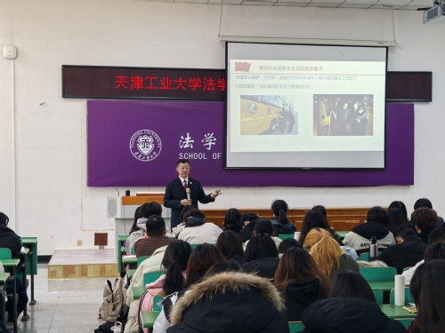 12月11日,在国家公祭日前夕,一场以《贯彻总体国家安全观 以检察切入和青年视角见证平安中国、法治中国建设》为主题的“国家安全教育进校园”活动在法学院217教室顺利举行。天津市西青区人民检察院党组成员、副检察长刘海东应邀为来自法学院和物理科学与技术学院的200余名师生上了一堂生动的法治教育课。