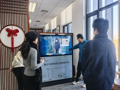 课程中,学生们通过“数字中医药文化互动体验平台”开展学习。该平台依托超过22亿字、25万卷册的中华古籍数据库,系统整合中医药经典文献、药材图谱、诊疗方法等资源,构建起MR经络认知、AI中医问答、VR药材辨识、VR节气养生、VR健身功法等多维度数字内容体系。借助虚拟现实技术,学生可“亲身”体验中药材的种植、采摘与炮制流程,直观理解中医药“药食同源”“治未病”等核心理念,在虚实结合的环境中深化对中医整体观与生命观的认识。