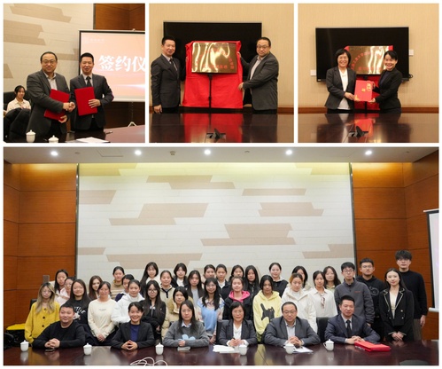 随后,李树成、张建华代表双方签署共建协议并为实习实践基地揭牌。方桂珍为张建华、袁美姣两位律师颁授“法学院本科生校外实践导师”聘书。双方相关负责人就后续合作共建、人才培养、实习就业、优秀校友访谈等事宜进行了深入交流。