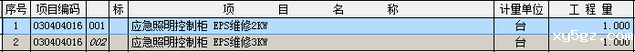 2KW应急照明柜一台、3KW应急照明柜一台。
