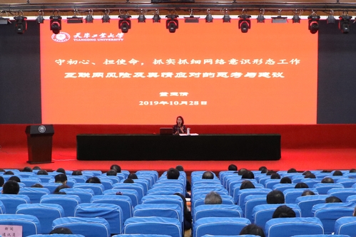 为深入学习贯彻习近平总书记网络强国战略思想,深入开展“不忘初心、牢记使命”主题教育,落实落细我校意识形态工作责任制,2019年10月28日上午,我校在经管学院141学术报告厅举办网络意识形态工作培训。天津市委网信办网络应急管理和网络舆情处处长董玉倩受邀为我校党委理论学习中心组作了“守初心、担使命,抓实抓细网络意识形态工作——互联网风险及舆情应对的思考与建议”的报告。校党委理论学习中心组成员,学校全体中层干部,各部门、学院网络管理员、新闻通讯员参加培训。