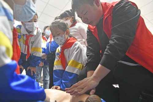 郭越同学结合生物医学工程专业特点及优势,向大家展示了电子脉搏测量器、电子听诊器、高精度温湿度计等医用电子设备,并逐个讲解其中的原理。同学们全神贯注,满怀期待地走进科学的神奇世界、领略科学的神奇魅力。小小的科学梦想,在这里起航,在同学们探求科学世界的心里埋下了一粒粒种子。杜敬鑫同学向大家展示心肺复苏急救措施、七步洗手法,宣传抗“疫”科普知识。