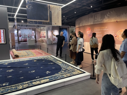 第二站崔黄口镇,崔黄口镇生产地毯有悠久的历史,该地区被誉为“地毯之乡”。师生一行首先来到织采宫-崔黄口国际地毯文化展览馆,展览馆分为上下两层,一层以全面展现中国地毯发展史为重点,二层主要以国际化视角,全面展现地毯技艺、文化特色。织采宫收藏和展示了诸多具有丰富内涵和精美图案的地毯藏品,可谓“集地毯神品于一堂”。通过参观,老师们被地毯精湛的织作技艺和丰富多彩的图案纹样所震撼。随后参观了天津卡米特纺织品有限公司展厅、生产车间,对于地毯的生产工艺和生产流程有了更深的认识。