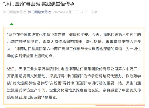 “津门网络大思政”微信公众号丨“津门国药”寻密码 实践课堂悟传承