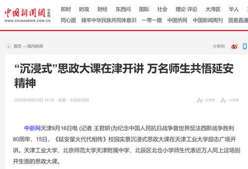 中国新闻网丨“沉浸式”思政大课在津开讲 万名师生共悟延安精神