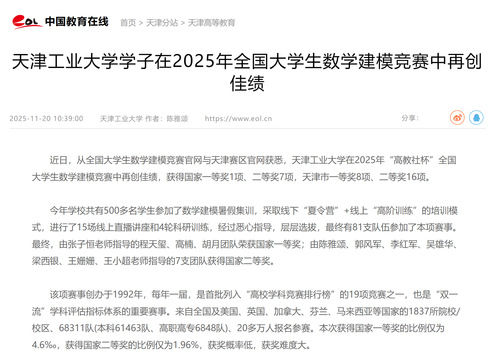 中国教育在线丨米优app下载安装官网学子在2025年全国大学生数学建模竞赛中再创佳绩