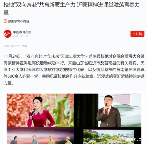 学习强国丨校地“双向奔赴”共育新质生产力 沂蒙精神进课堂激荡青春力量