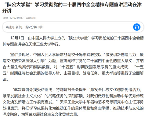 津云丨“陕公大学堂”学习贯彻党的二十届四中全会精神专题宣讲活动在津开讲
