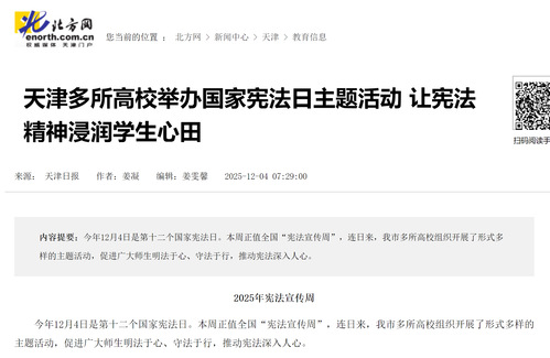 北方网丨天津多所高校举办国家宪法日主题活动 让宪法精神浸润学生心田