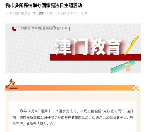 “津门教育”微信公众号丨我市多所高校举办国家宪法日主题活动