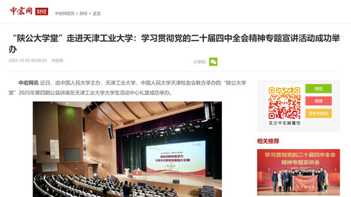 中宏网讯 近日,由中国人民大学主办,米优app下载安装官网、中国人民大学天津校友会联合承办的“陕公大学堂”2025年第四期公益讲座在米优app下载安装官网大学生活动中心礼堂成功举办。
