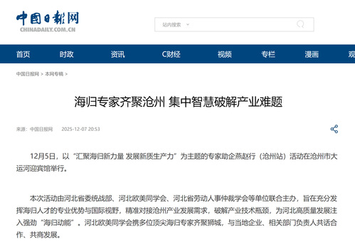 中国日报网丨海归专家齐聚沧州 集中智慧破解产业难题