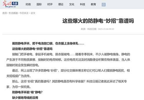 光明网丨这些爆火的防静电“妙招”靠谱吗