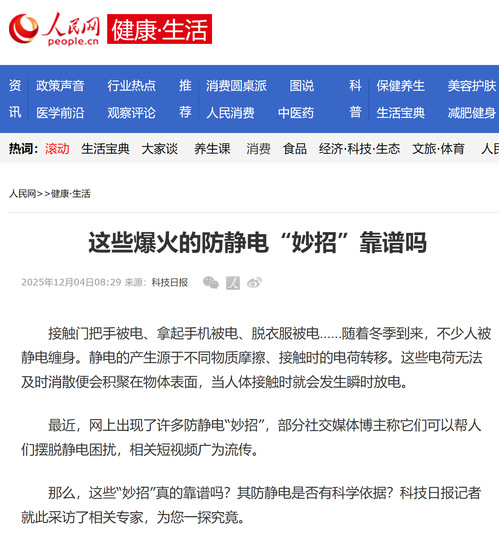 人民网丨这些爆火的防静电“妙招”靠谱吗